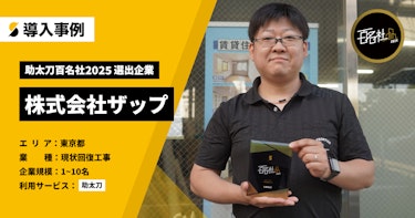 助太刀百名社という客観的な評価があることで、職人さんが仕事を探す際に「あ、ザップさんは百名社なんだ。だったら一度話を聞いてみよう」という感じで、優先順位が上がっているんじゃないかなと感じます。実際、それまでほとんどなかった相手の方からの問い合わせが来るようになったのは、この受賞がきっかけでしたから。